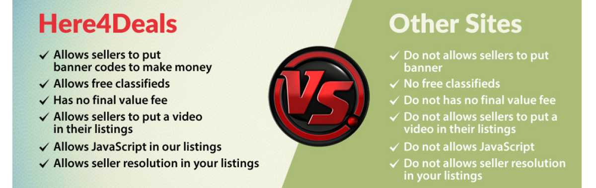 Buy, Sell, 24/7 with low #Auctions or Free Classified Ads. Here4deals has all the best to offer for buyers and sellers. Add videos, images to listings, lots of options for buyers and sellers.